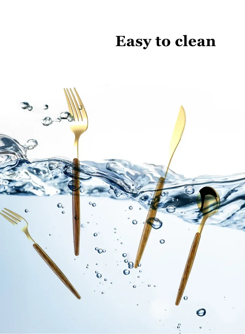 The tableware is made of durable and rust-proof high-quality stainless steel.