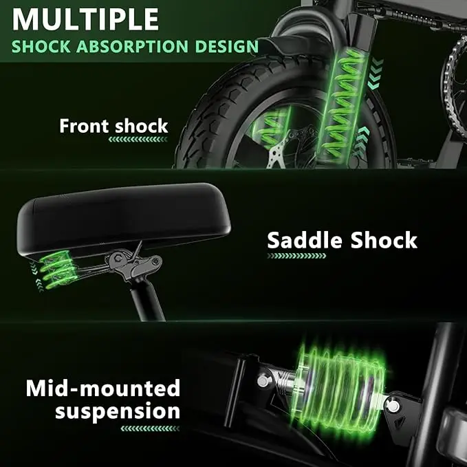 Range: 30-35km (25km/h) Brakes: Front and rear dual disc brakes Front shock absorber: Front spring with 6 watt LED headlights, rear brake warning light