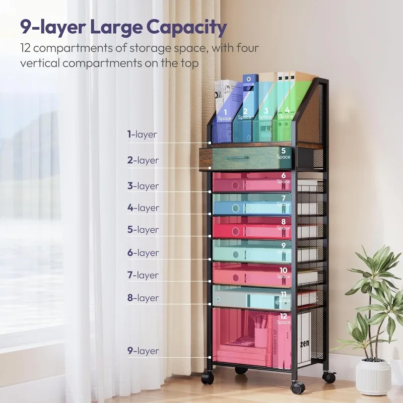 - [Perfect for Any Space]: Compact yet spacious, this rolling cart organizer works for files, books, and supplies. Paper holder is a versatile paper sorter, binder shelf, and all-in-one storage solution