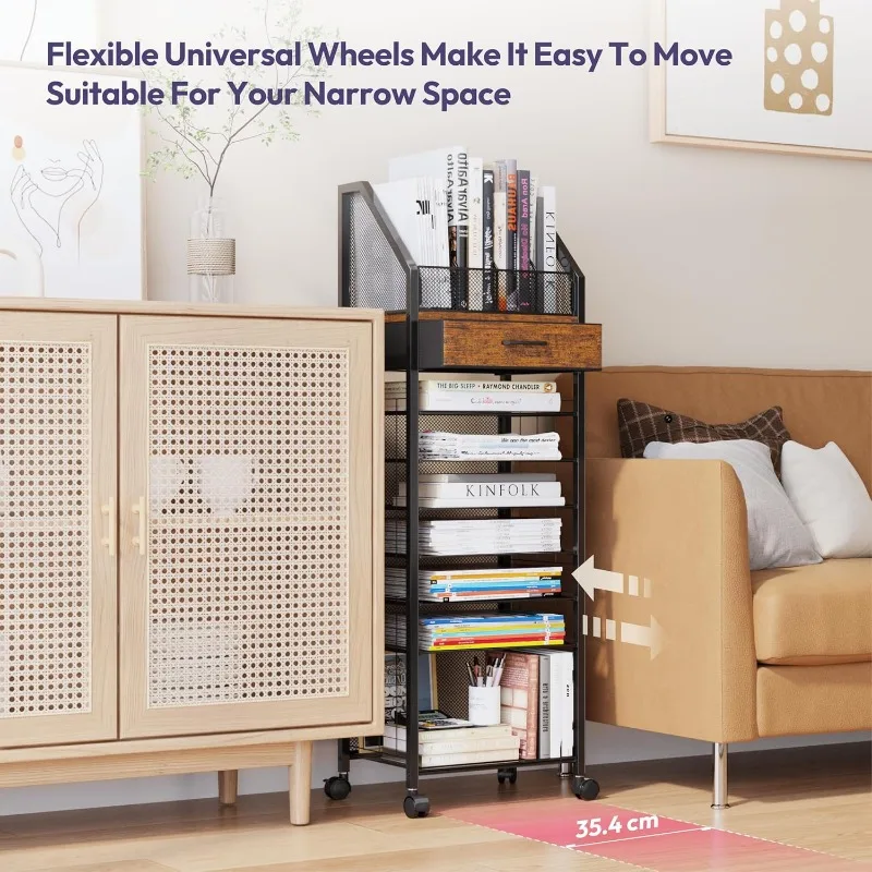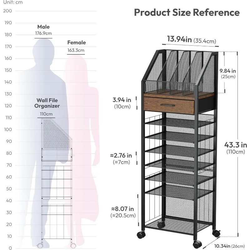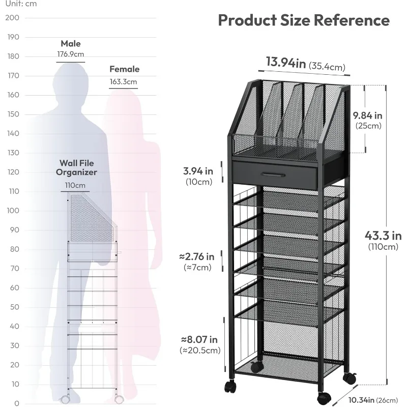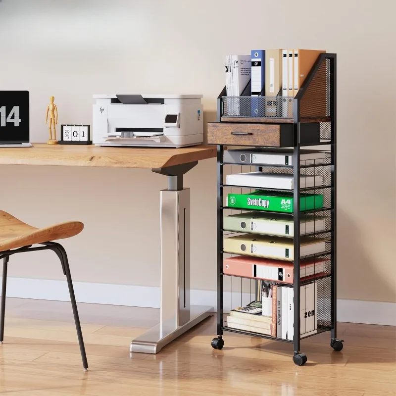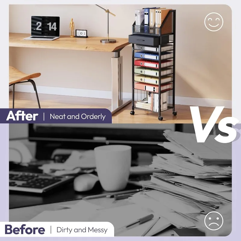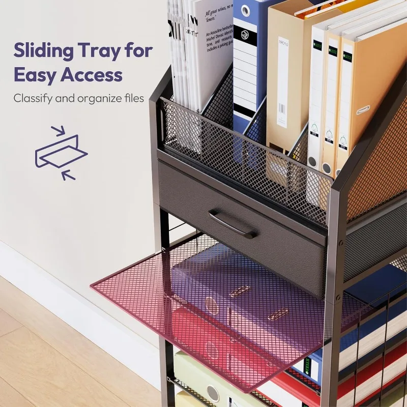 - [Sleek and Modern Design]: The black metal finish complements any décor. Use it as a paper file organizer, rolling bookshelf, binder rack, or stylish file folder holder to enhance your workspace