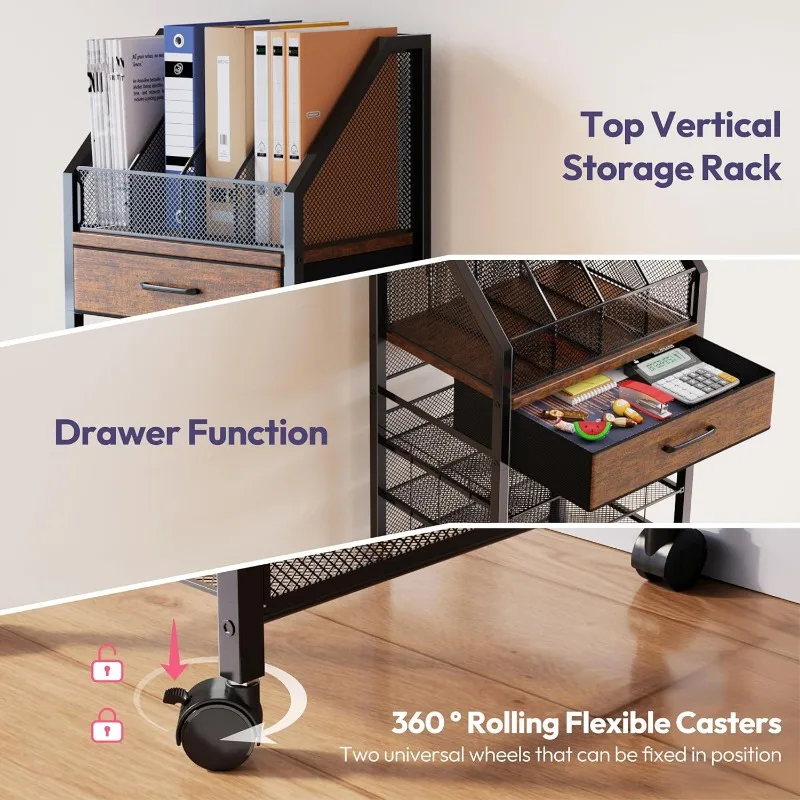 - [360° Rolling Wheels for Easy Mobility]: Binder storage organizer equipped with 360° swivel wheels, rolling cart with drawers moves effortlessly across rooms. Ideal as a book cart, teacher cart, or mobile office organizer