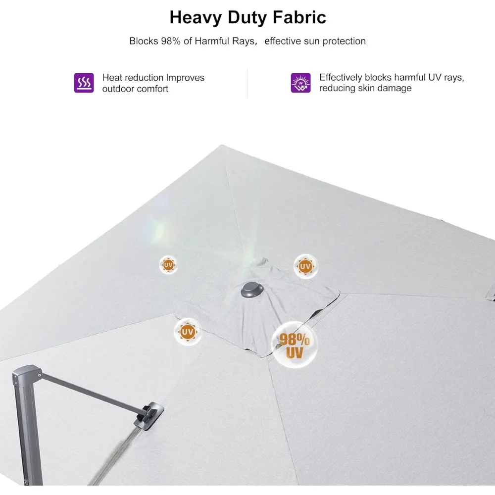 - Blended Textile Process: These pool umbrellas boast exquisite textures from advanced blending, ensuring enhanced visual appeal. With 3-year fade resistance and 98% UV protection, they combine style and durability for enduring beauty and reliable sun damage defense in your outdoor sanctuary.