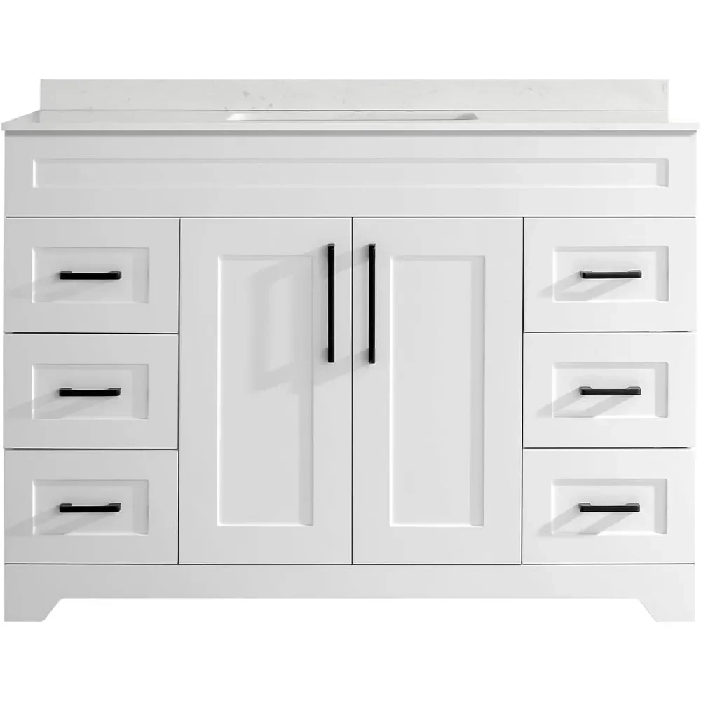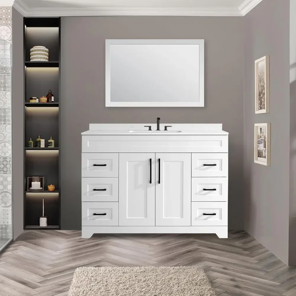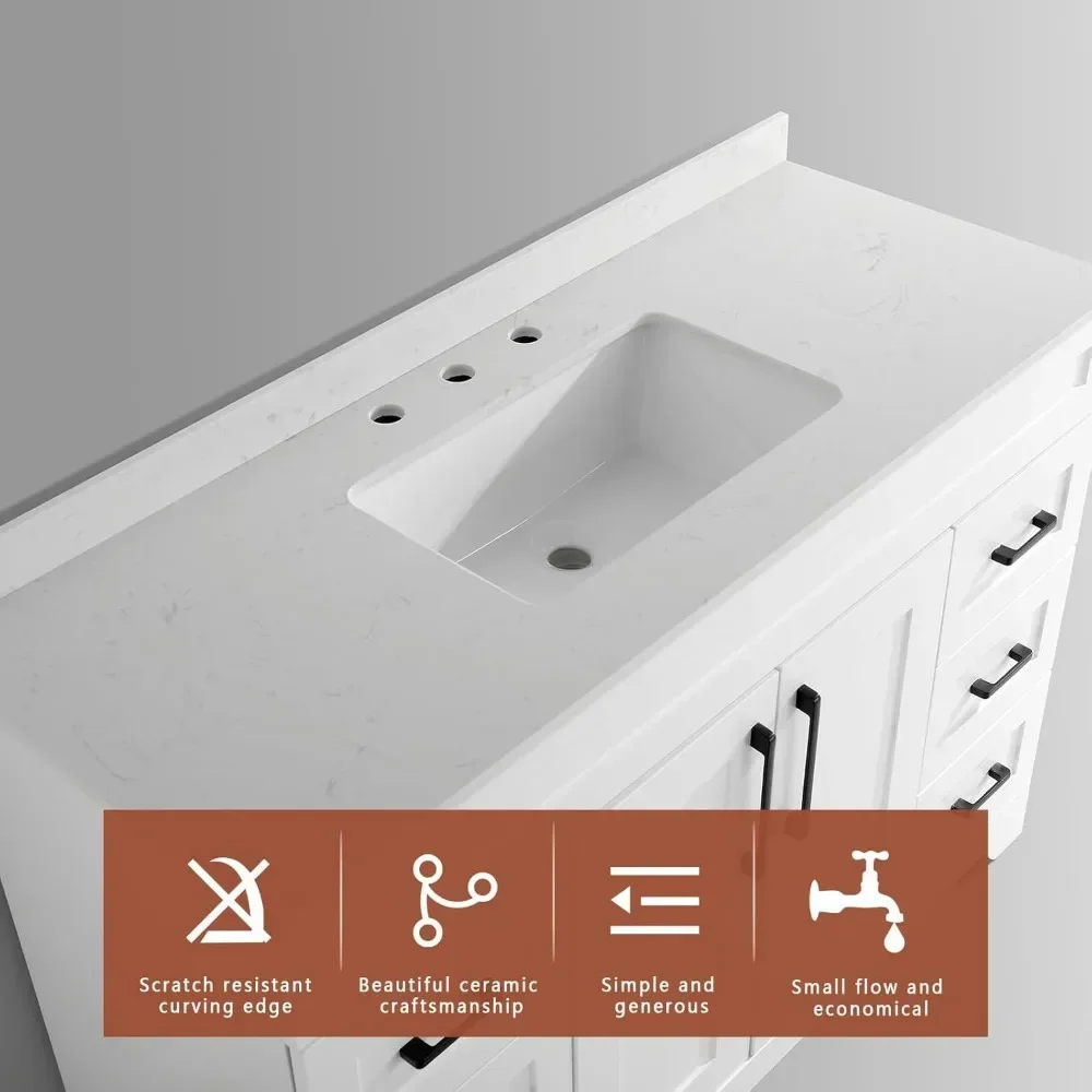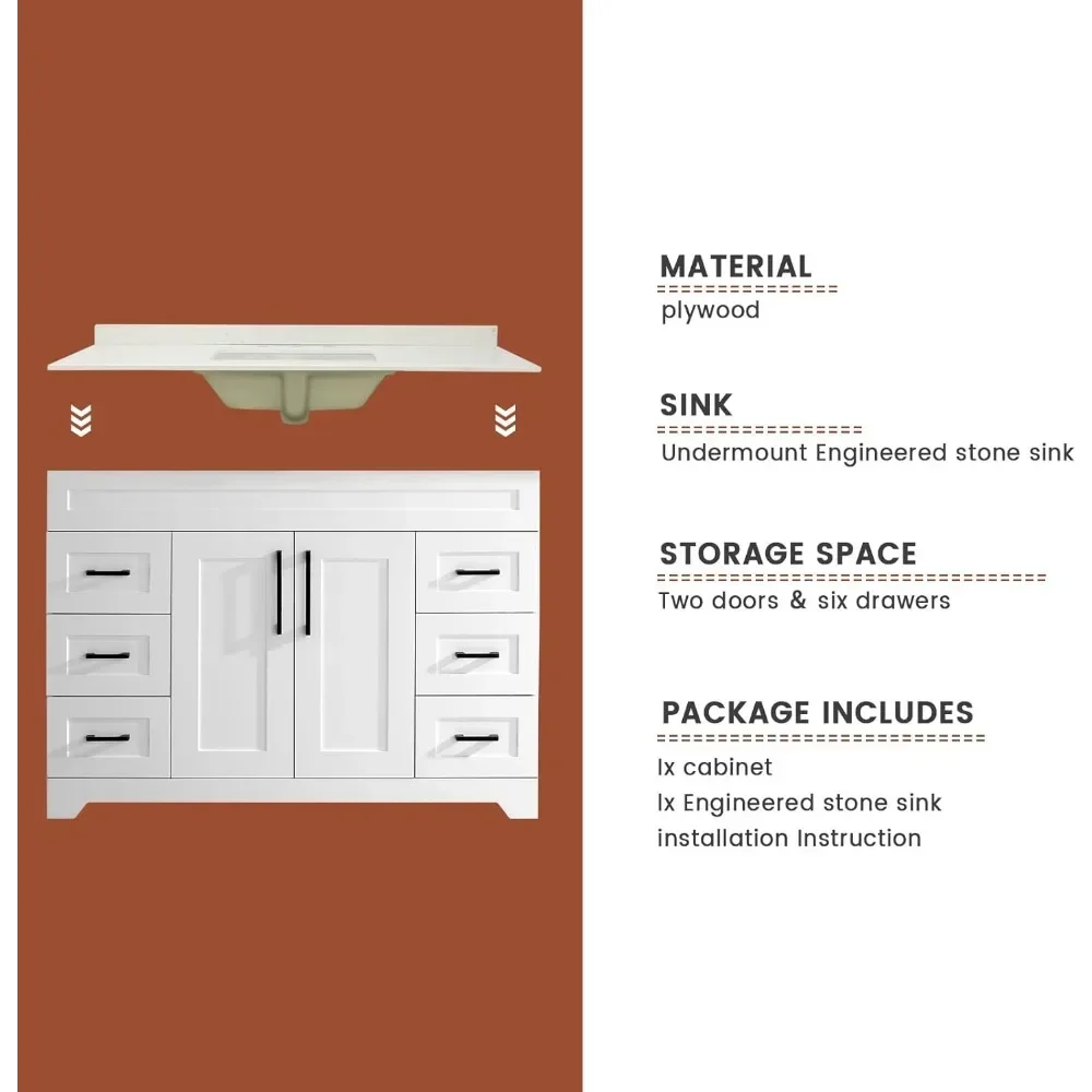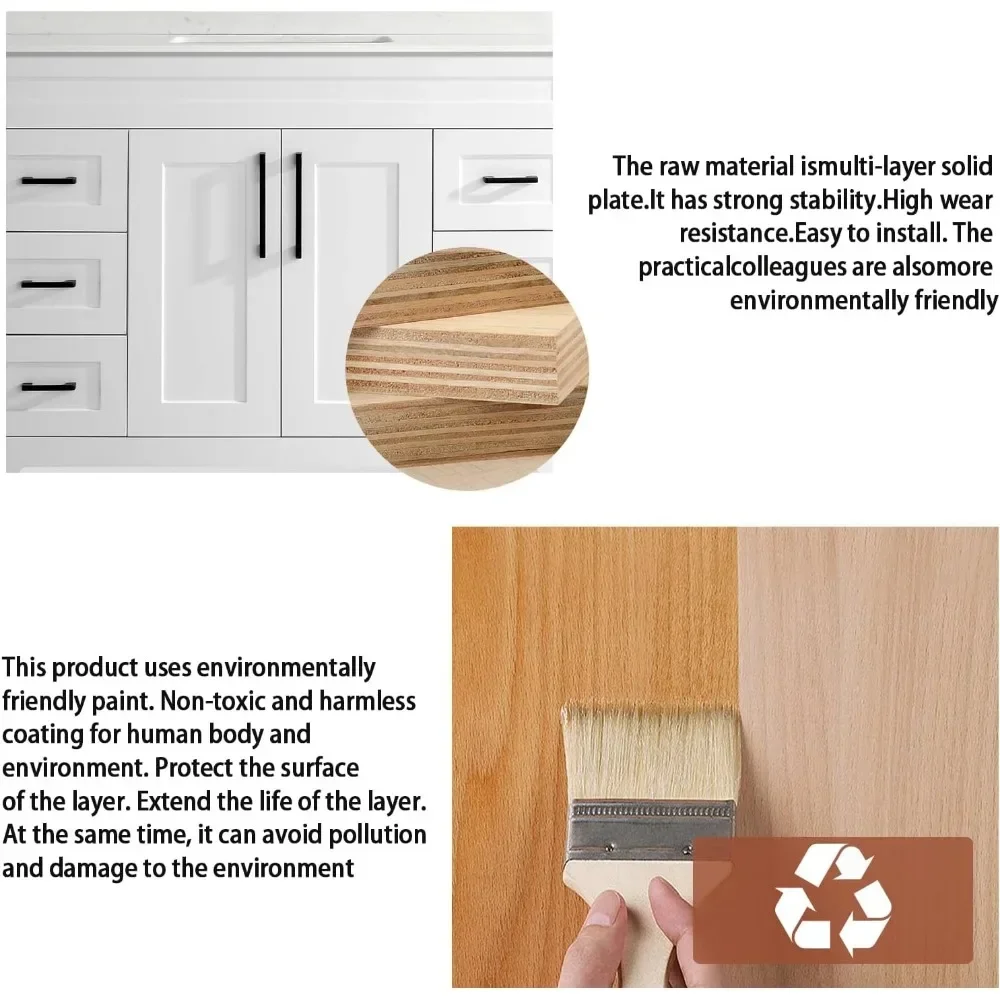 - 4.Easy To assemble:Cabinets are equipped with instructions, the instructions have a schematic diagram, the installation is very convenient.NOTICE!! Cabinet does not contain a mirror! Artificial stone sinks do not contain faucets, Pop Up Drain!We also offer bathroom cabinets Without Sinks, so please Check your options!