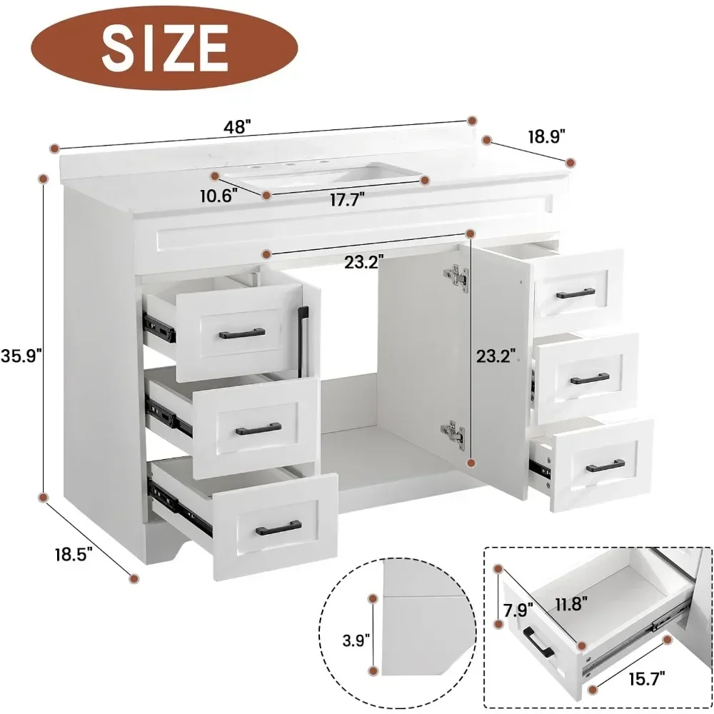 - 2.Sufficient Storage for All:This bathroom cabinet comes with soft close cabinet doors and full extension drawers. Available in 32inch/36inch/48inch sizes for your choice.This bathroom vanity boasts generous space to elegantly store all your toiletries, ensuring everything is within easy reach while maintaining an organized and tidy environment.