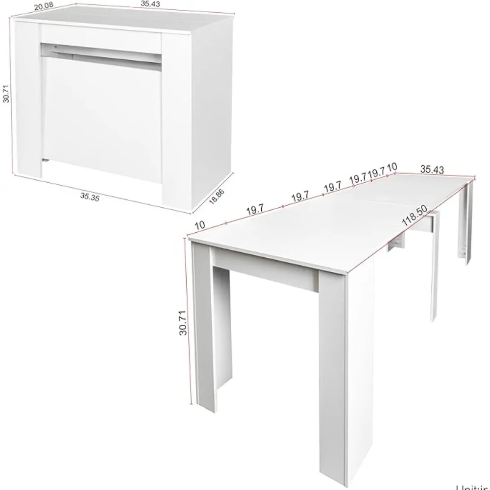 - 【Expandable Dining Table - Space Saving】The extensions simply slot into the convenient extension holder of the console to save unnecessary space - this mechanism makes them essential for your home and can be used as a simple desk or as a large dining table. The versatility of this dining table design enables it to seamlessly blend into various environments, ranging from the most traditional to the contemporary. This dining table can adapt and enhance any environment with its elegance.