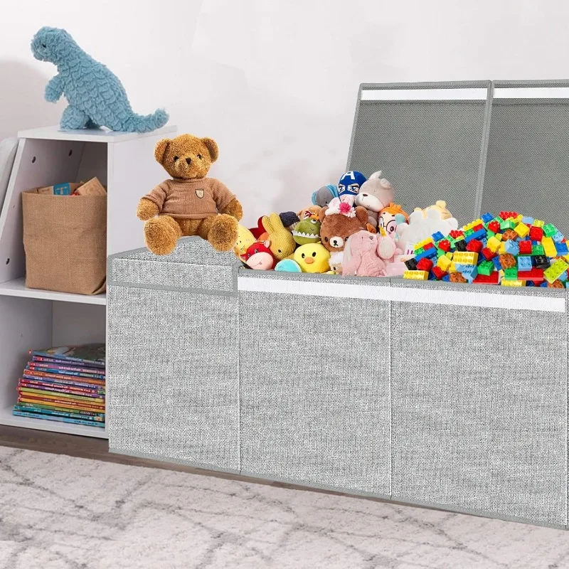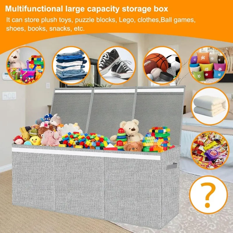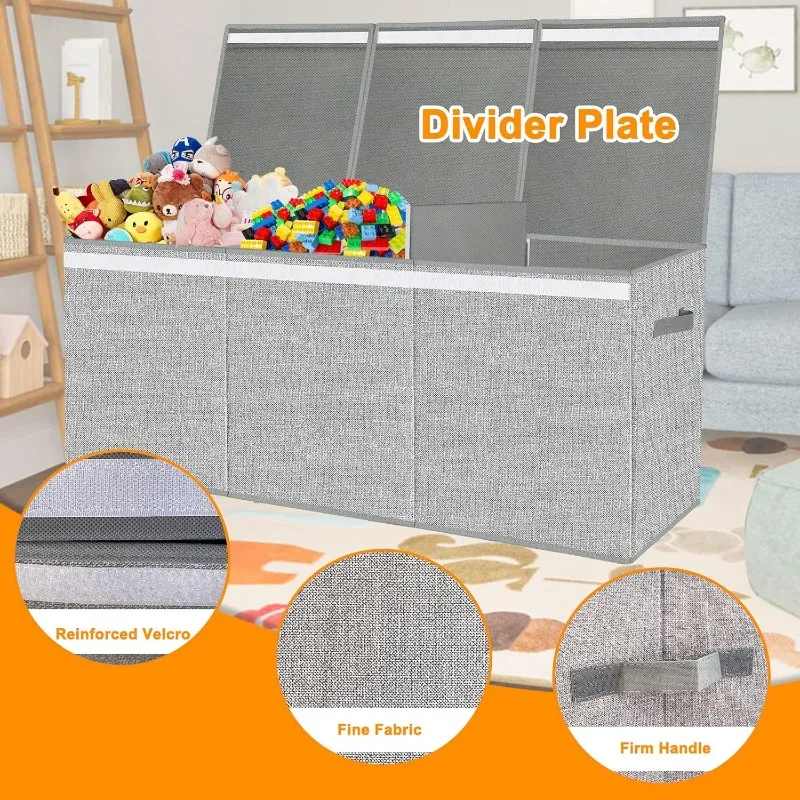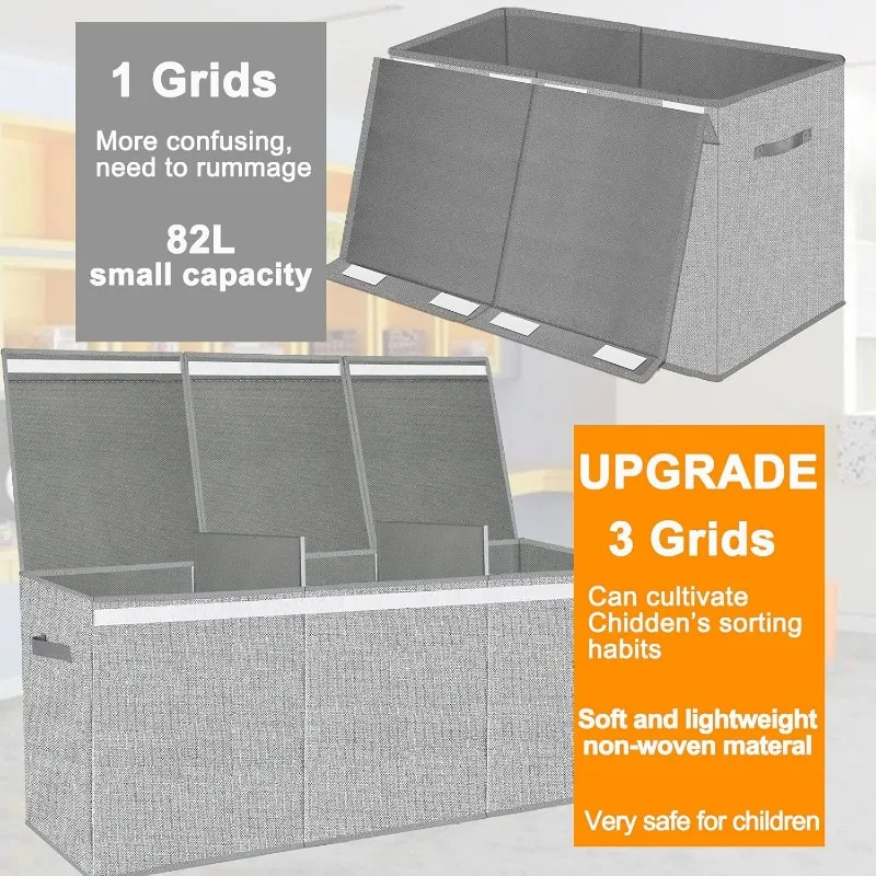 - [Detachable Partitions]This toy storage box contains 2 detachable partitions, which can be turned into different spaces. If your toy is large, it can be completely removed. Can store different kinds of toys.