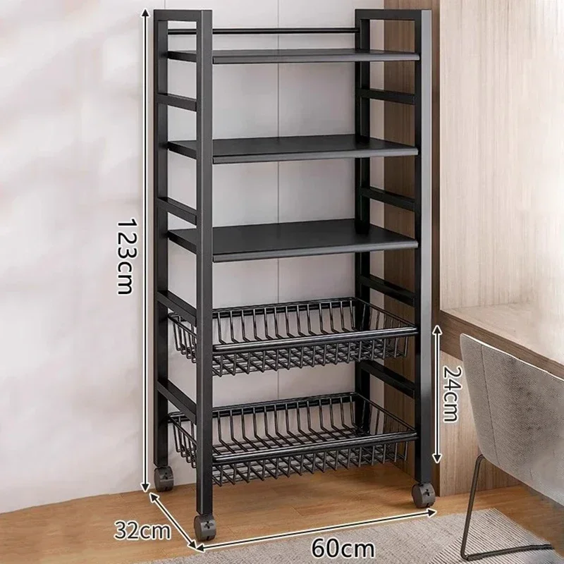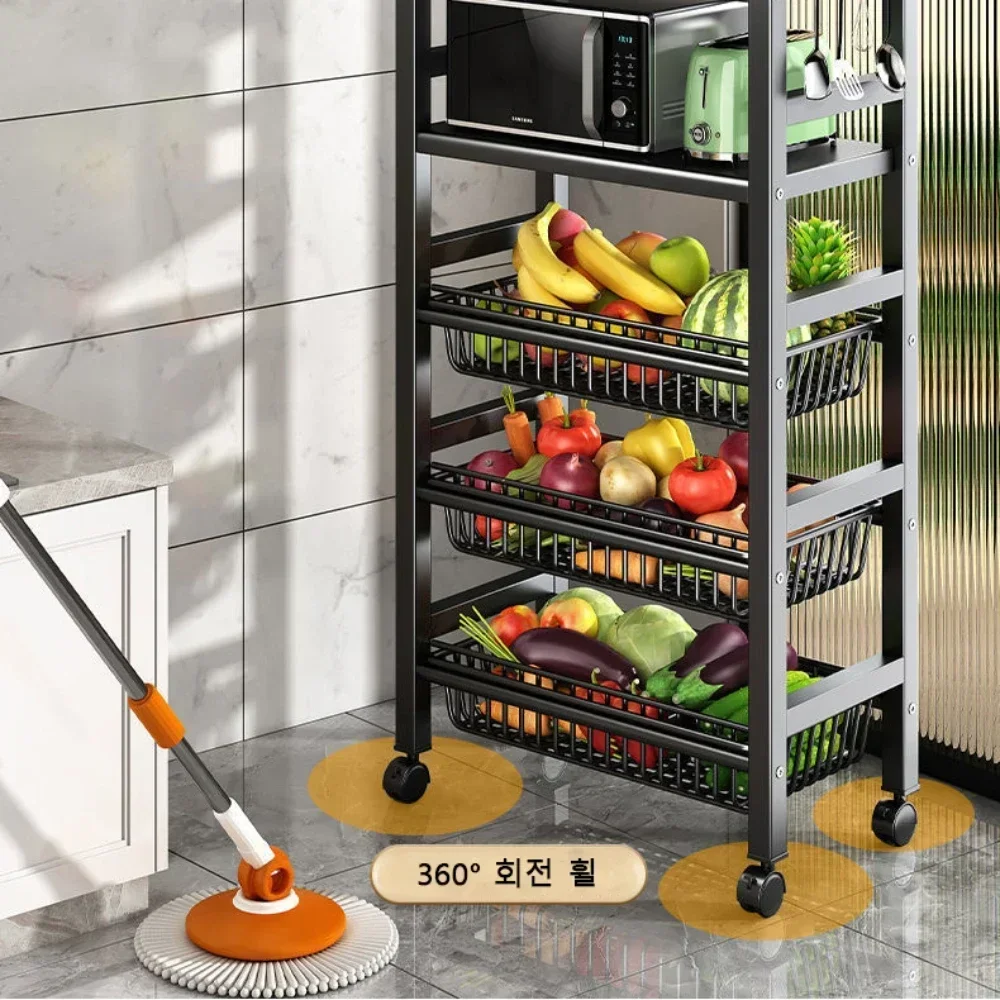 Kitchen Vegetable Basket Trolley Multifunctional Storage Rack Fruit Movable Rolling Cart Microwave Oven Kitchen Organizer Shelf