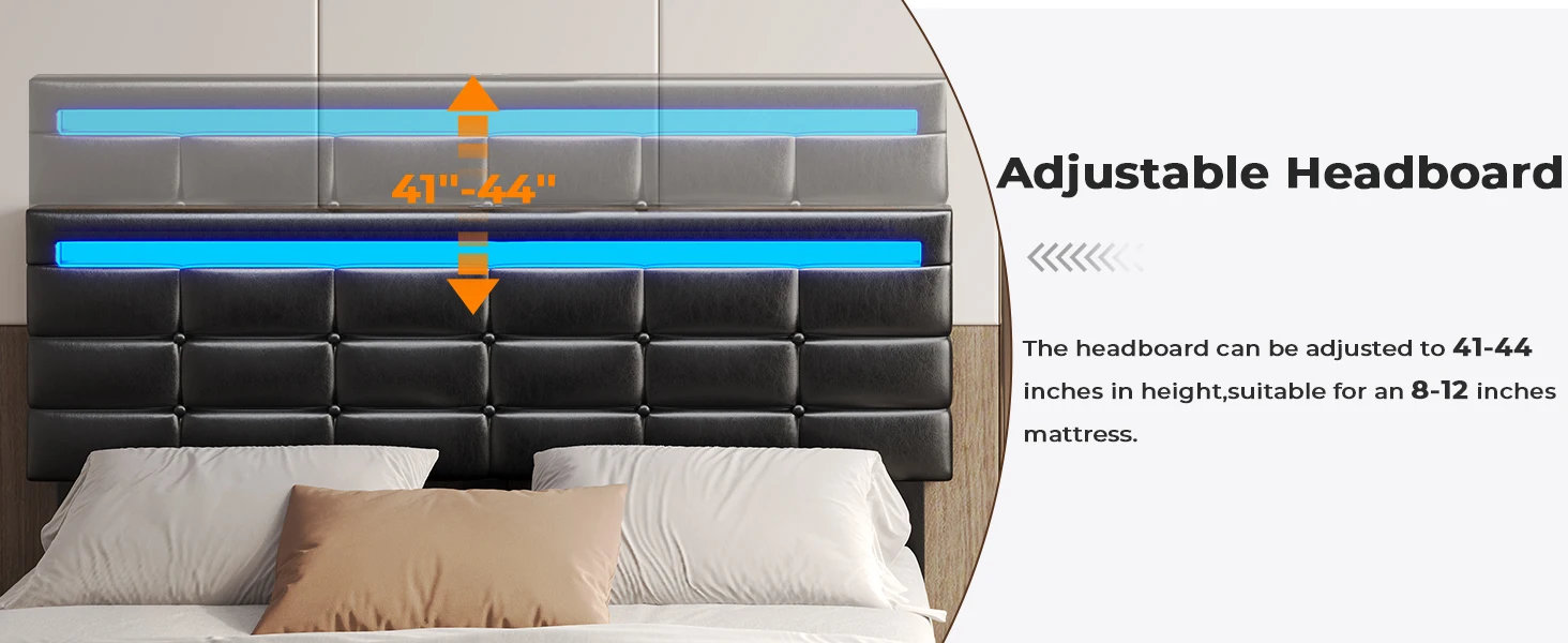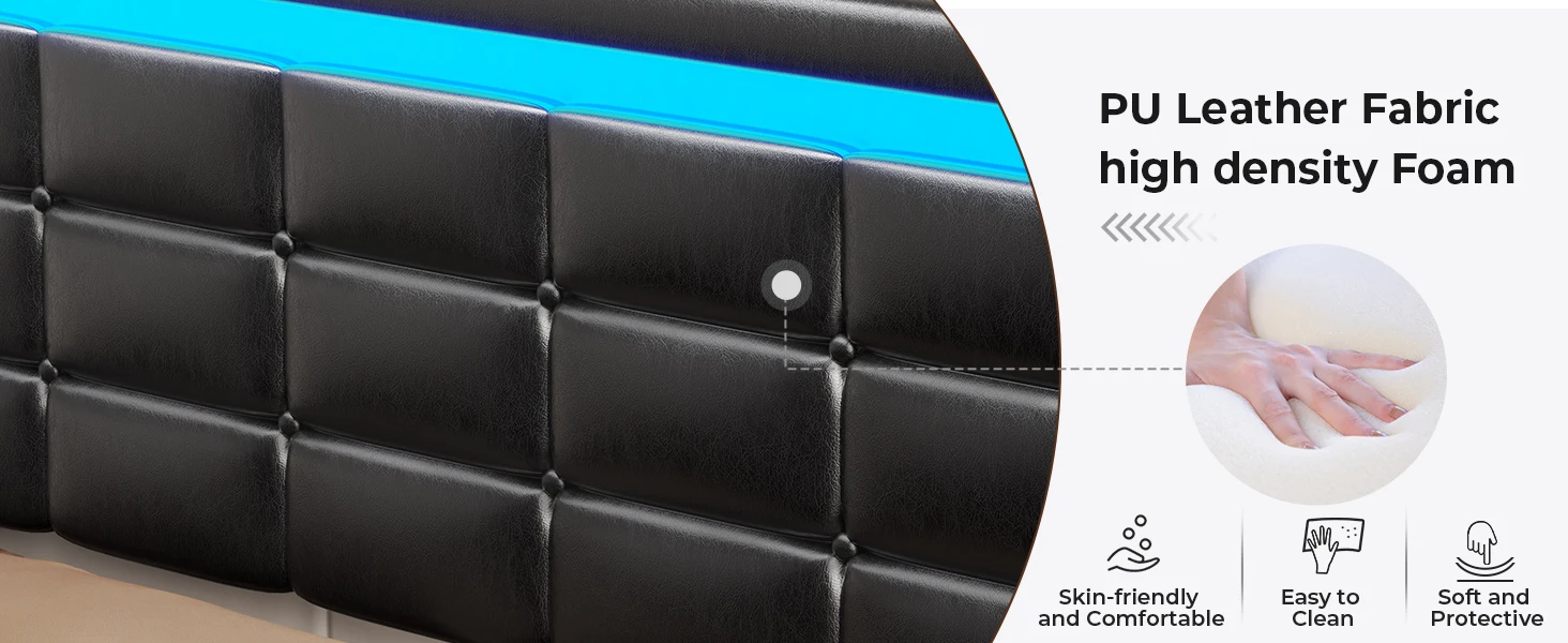Leather Platform Bed ,LED Bed Frame Queen Size