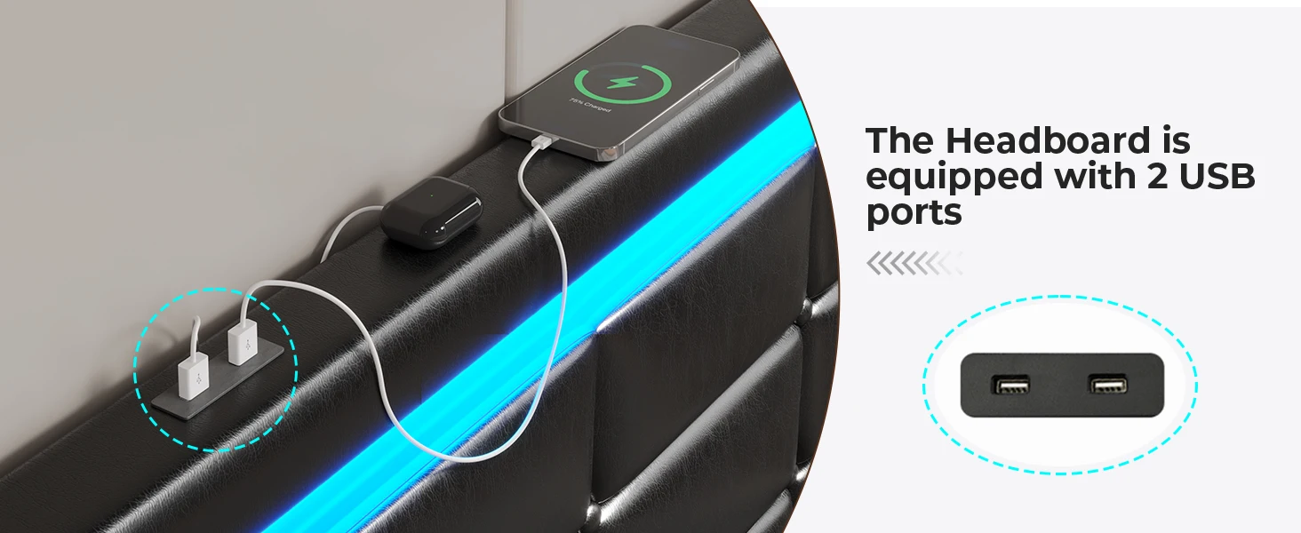 | Package Content | Bed Frame, Headboard Footboard, 2 USB, Wood Slats, LED lights(Mattress Not Included) |