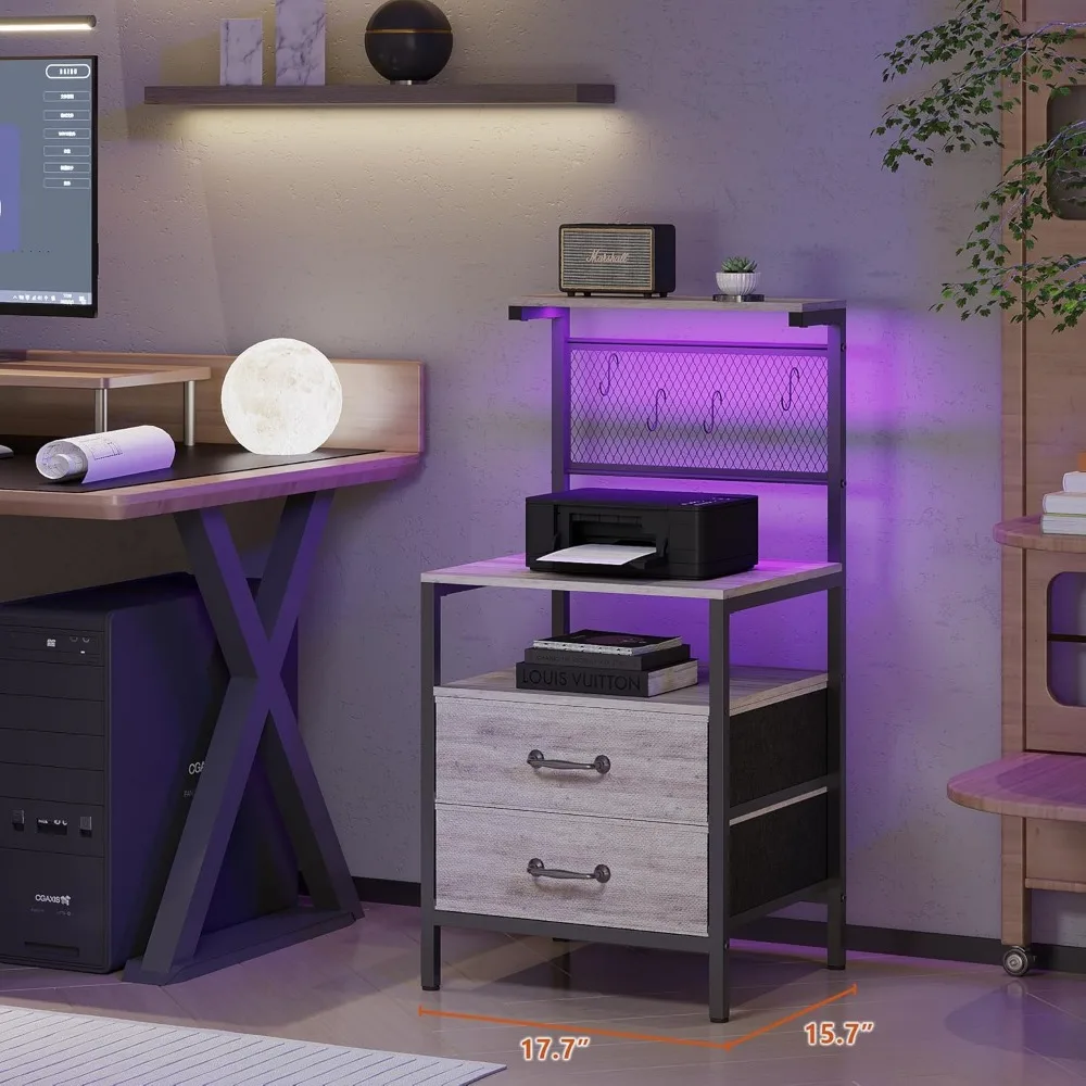 Bedside Table with LED Light Open Shelf & 2 Drawers Top Shelf & 4 Hooks