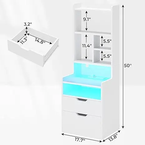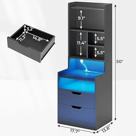 - 【Nightstand with 2 Light Strips】The bedside table is equipped with 2 RGB light strips, which can be controlled by button or mobile app. There are more than 60,000 colors of LED lights to choose from, and there are also modes such as style mode, music mode, microphone mode, and timer function waiting for you to explore. You can design a unique light show according to your own preferences.