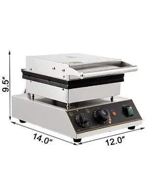 Commercial Waffle Maker Round waffle maker machine, designed for baking delicious waffles. Made of quality stainless steel, the machine is beautiful, durable and easy to clean. Cast aluminum mould with teflon coating makes cooking easy and fast. Precise time and temp. control. Alarm provided when cooking process is over. Features: Time & Temperature Control Non-stick Pans Advanced Quality Sturdy and Durable Specifications Power: 1750W Timer: 0~5 mins Temp. : 50~300℃ Mould Coating: Teflon Mould Material: Cast aluminum Body Material: Stainless steel Gross Weight: 24. 3 lbs (11 kg) Package Dimensions (L x W x H): 21. 3" x 13. 8" x 10. 2" (54 x 35 x 26 cm) Package Content 1 x Commercial Waffle Maker 2 x Brushes 4 x Sponges 1 x Food Clip 1 x Egg-beater