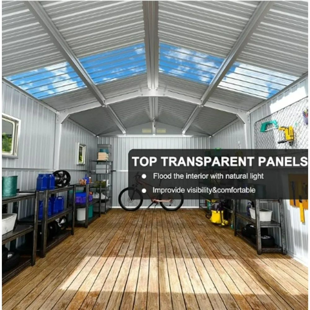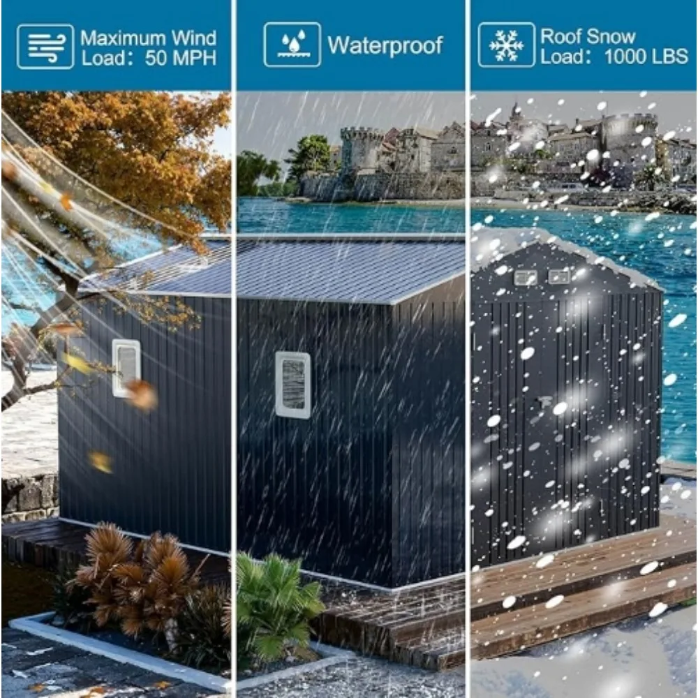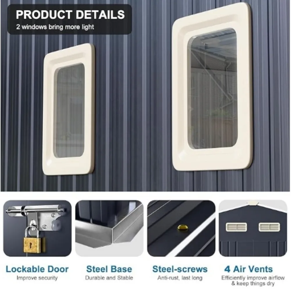- Premium Durability & All-Weather: The metal storage shed is made from 0.25mm color steel plate & 0.6mm galvanized sheet. Includes reinforcement and 4 inland anchors, ensuring a solid overall structure capable of effectively resisting corrosion, oxidation, rain, and ultraviolet radiation. Lightweight and maintenance a breeze.