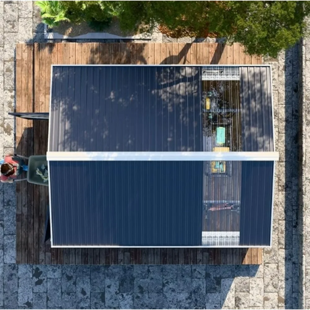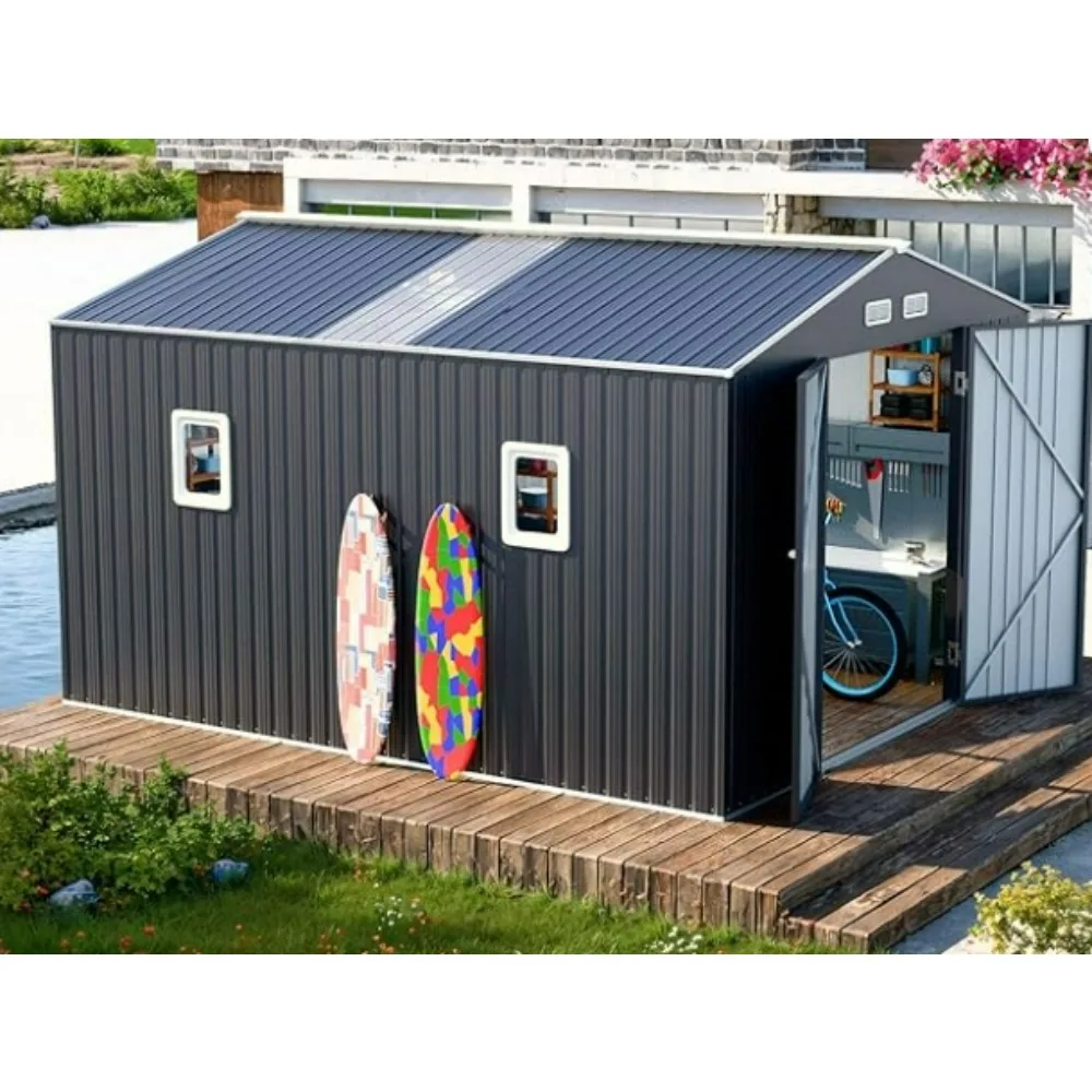 - User-Centric Design: Engineered for convenience, the shed features a sloping roof to prevent water accumulation and a lockable door for enhanced security. With flexible double sliding door options and thoughtful ventilation through 4 vents, the design balances functionality and aesthetics.