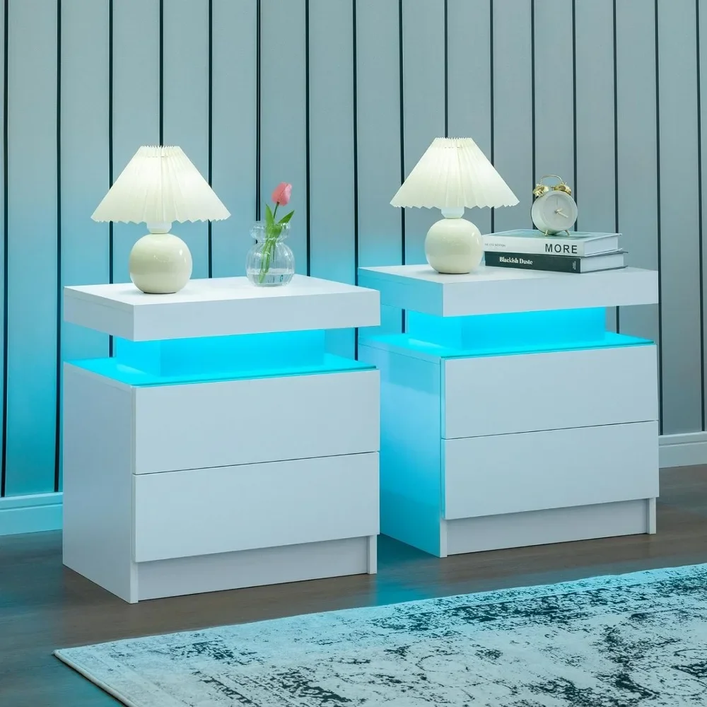 - 【Ample storage space】: The modern nightstand has 2 drawers and a small open shelf, providing plenty of storage space for your bedside essentials like phones, lamps, books, alarm clocks, etc.