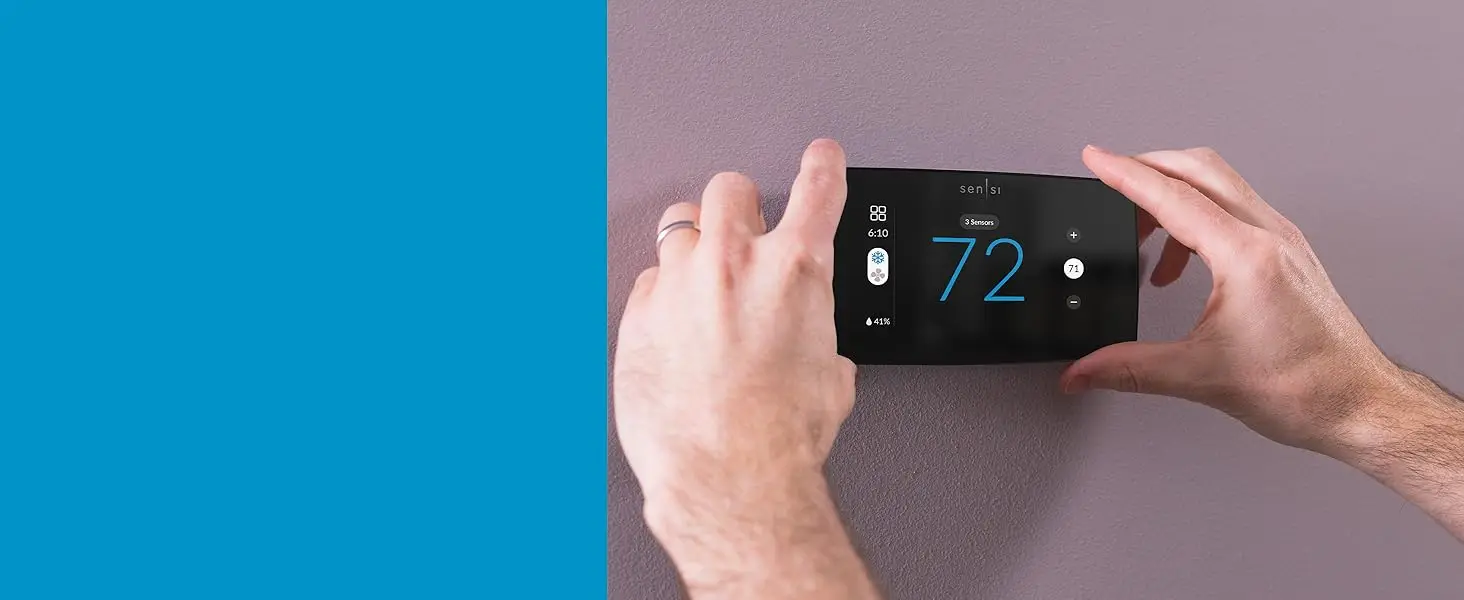 From across the room or across the country, your Sensi Touch 2 smart thermostat makes it EASY TO REMOTELY CONTROL and schedule your home comfort – Anytime. Anywhere. Designed to work with Sensi room sensors to balance temperatures throughout your home. C wire required *, so it is COMPATIBLE WITH THE HVAC EQUIPMENT IN MANY HOMES in the U.S. and Canada. The INTUITIVE APP WALKS YOU THROUGH EACH STEP OF INSTALLATION with custom configured instructions, removing all the frustration and guesswork from the installation process, so you can be up and running in no time, no experience required. Put your comfort on your terms using location-based temperature control with geofencing or creating custom heating and cooling schedules with the flexible 7-day scheduling option with the ENERGY STAR certified Sensi smart thermostat. Both energy saving features save you about 23% on your HVAC energy usage* so you can SAVE MONEY WITHOUT COMPROMISING YOUR COMFORT. Plus, Sensi INTEGRATES DIRECTLY WITH HOME AUTOMATION PLATFORMS Amazon Alexa, Google Assistant Samsung SmartThings. Connect to Amazon Alexa to control your home temperature with simple voice commands, have Google set, raise or lower your home temperature when using Sensi with your smart device. For full details, review the Sensi Privacy Policy under the "Products Documentation" section below. Note: if you sign up for a program with a third party, such as a utility or controller, details and terms for that program are between you and the third party, not Emerson, and may include additional data collection. Certain add-on services require additional data to operate as intended. These services are not required and are optional.