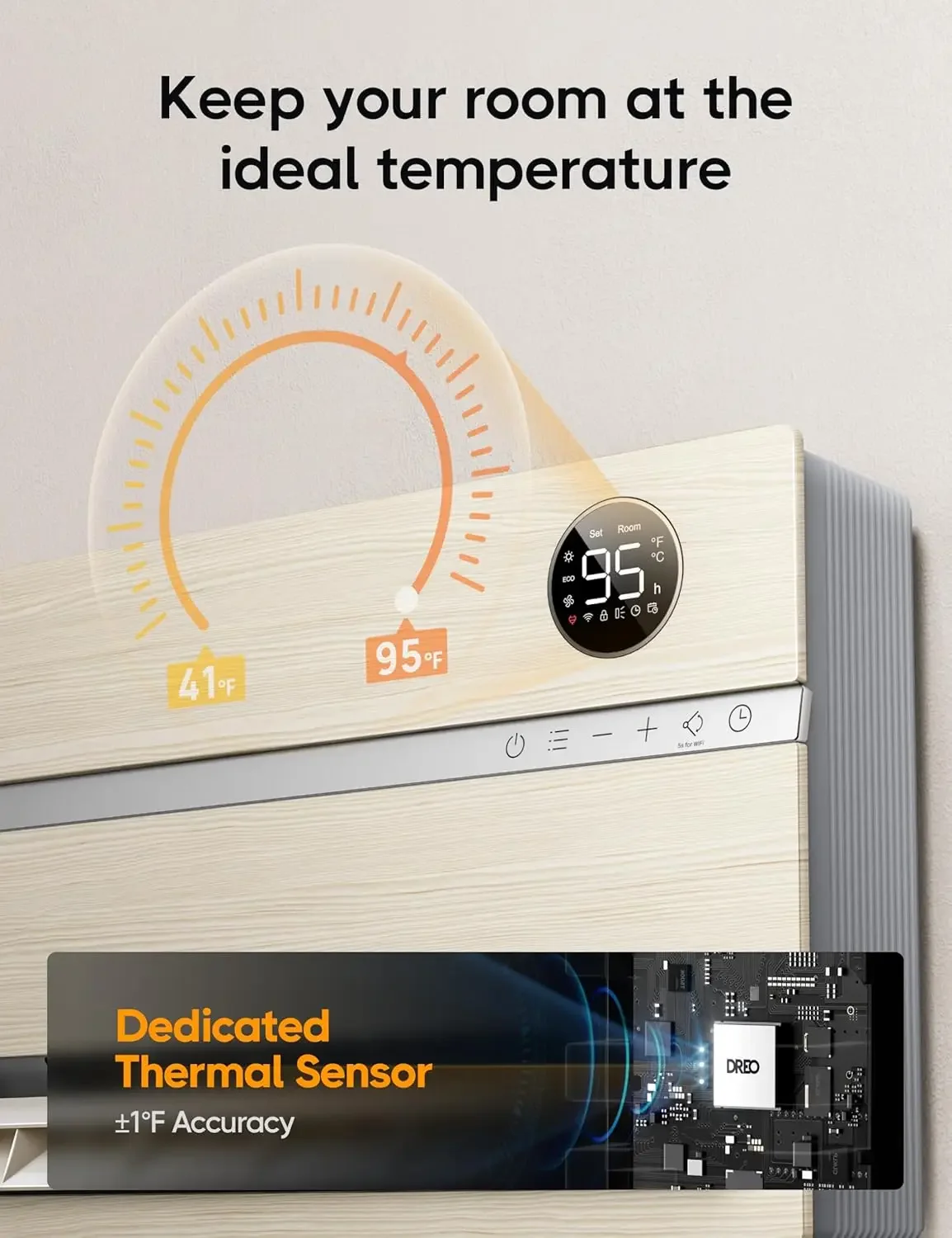 - Fast and Accurate Temperature Control: Set the room temp as you like, choose from 41 to 95°F range with an unprecedented 1°F accuracy. PTC ceramic space heater brings fast and steady heating for an exceptional comfort experience.