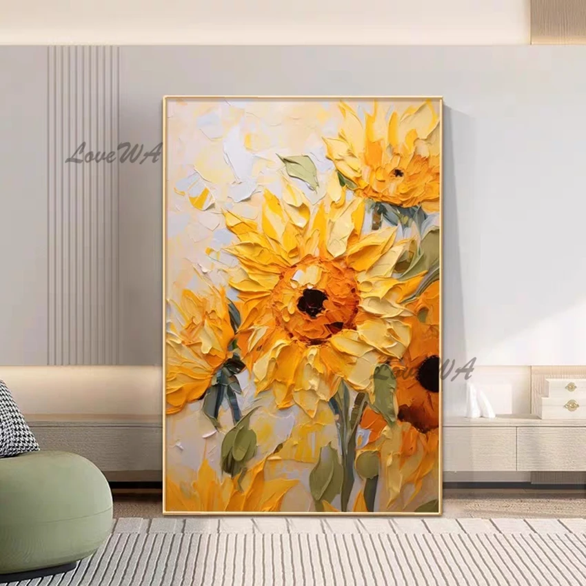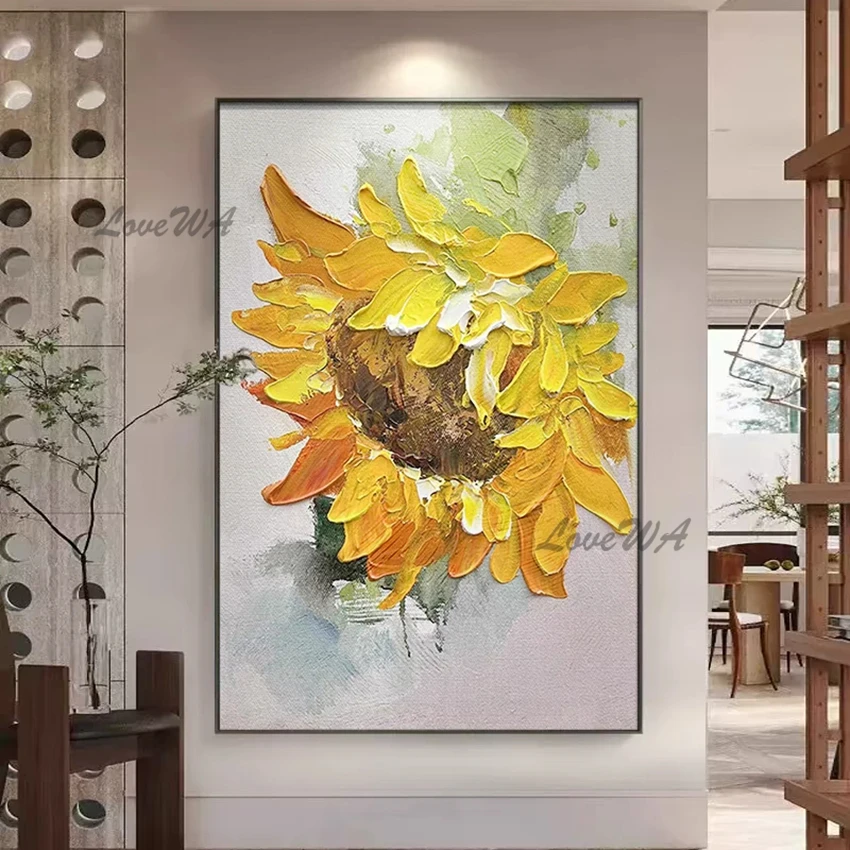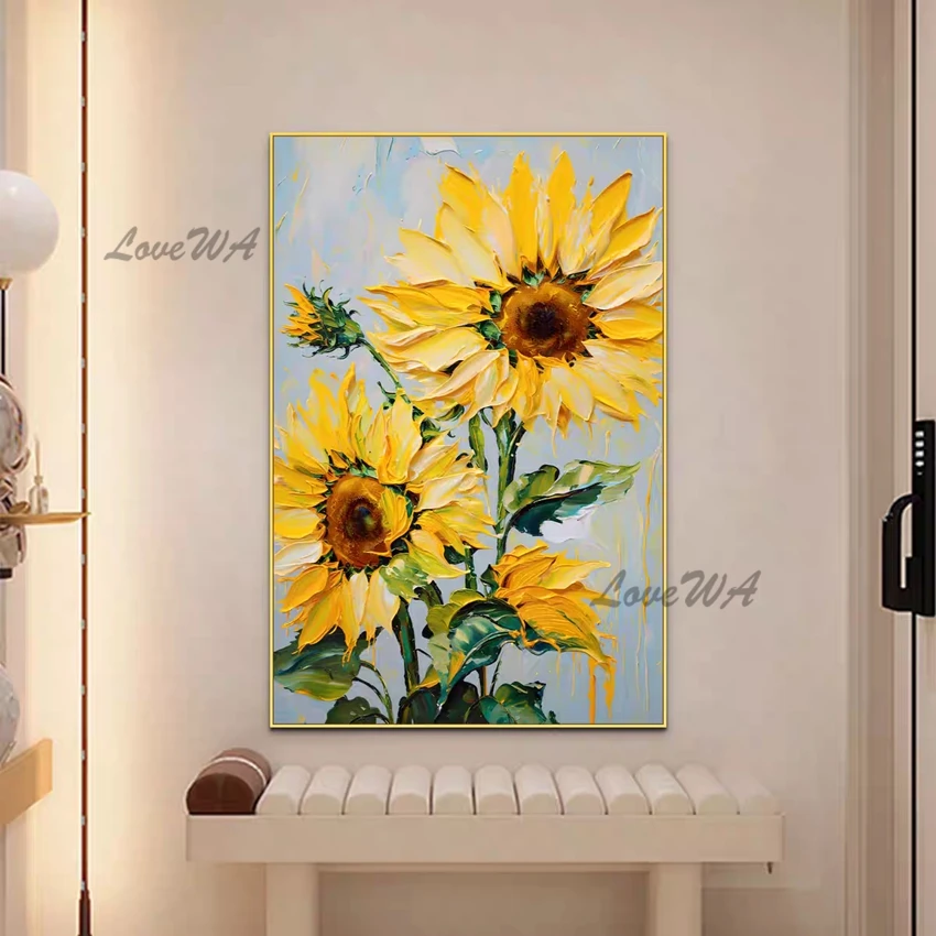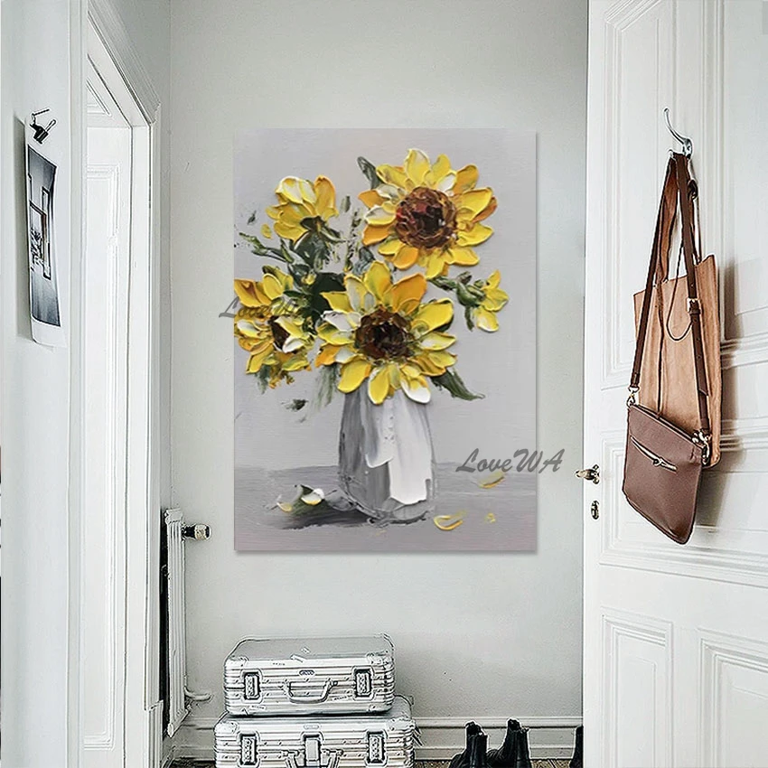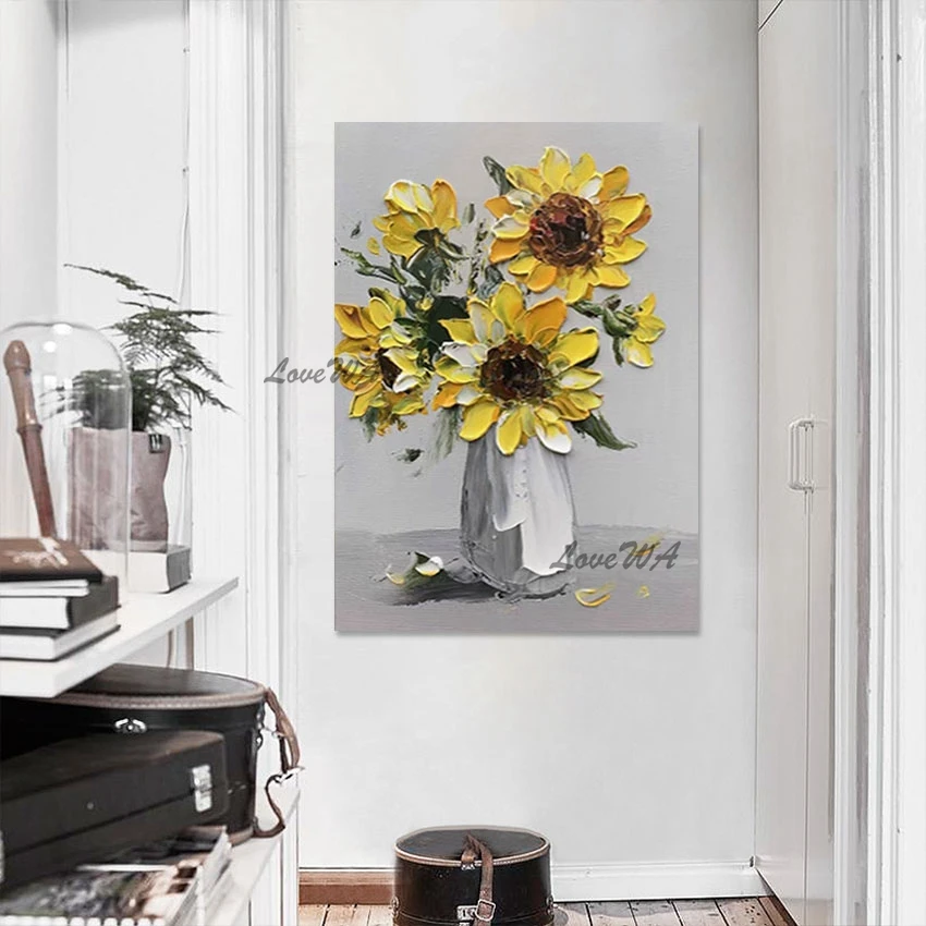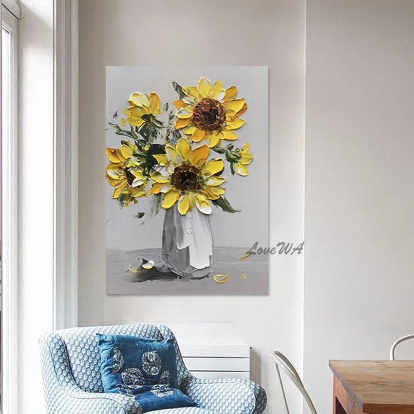 Thick Acrylic Sunflower Flower Vase Oil Painting Knife Art Home Decoration Canvas Quality Artwork Wall Picture For Bedroom