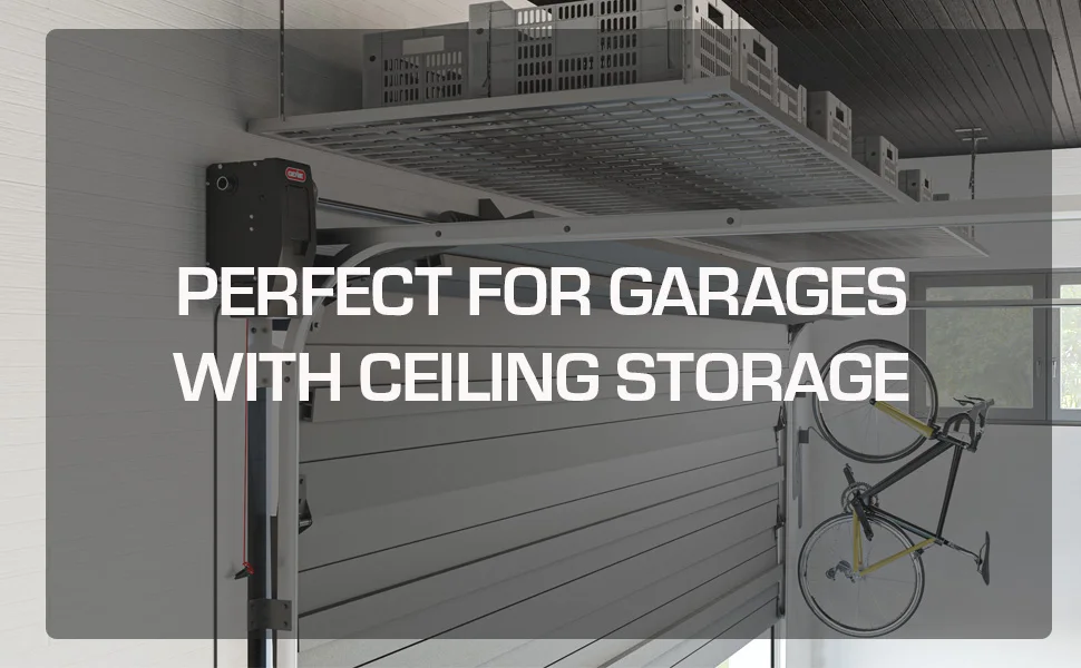 The new innovative wall mount Genie garage door opener eliminates the traditional rail design. This Genie wall mount garage door opener features a bluetooth LED light, wireless wall console, wireless remote, and an automatic door lock. This wall mount garage door opener easily attaches directly to the garage door's spring mounted high and to the side of the garage door. This design opens all the space above where the cars would park in your garage. Often referred to as a residential jackshaft garage door opener, the Genie residential wall mount garage door opener models also includes the newest Genie garage door opener accessories. This compact wall mounted jackshaft style residential Genie garage door opener will work on residential sectional garage doors up to 850lbs in weight, and 14ft in height, even without the use of a battery backup. The Genie wall mount garage door opener is the perfect garage door opener, for a clean sleek appearance or for those who need room above the garage door.