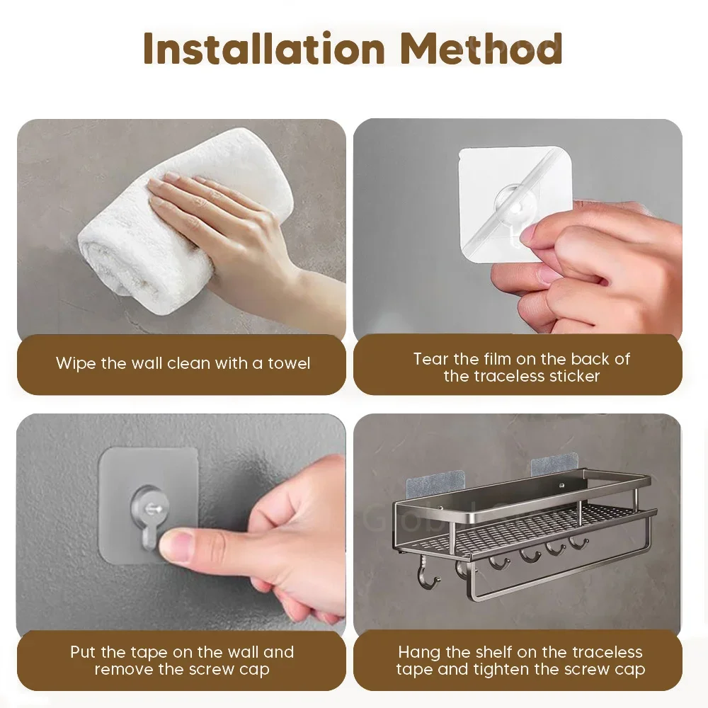 3. Weight bearing precautions: Although it has strong load-bearing capacity, please do not use it under overload to avoid damage. If you need to store heavy items, we recommend using screws for installation.